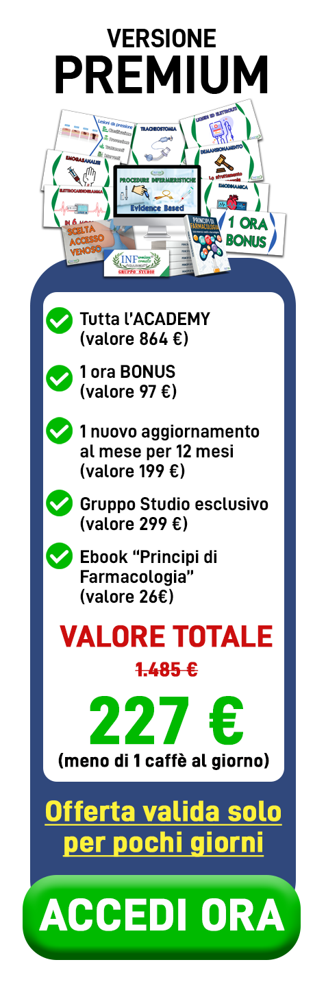 Con questa offerta, che a ripensarci ti stiamo veramente regalando al prezzo delle patatine, hai la possibilità di apprendere informazioni SERIE basate su EBN, che ti permetteranno di migliorare la TUA pratica clinica, sbugiardando i FALSI MITI dell'infermieristica, ai quali forse credi anche tu senza saperlo.
