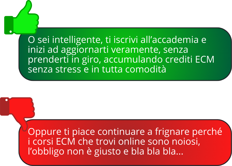 Là fuori è pieno di offerte con pacchetti ECM, gratuiti e a pagamento, ma poi ti ritrovi liste infinite di corsi tutti diversi (uno da 1 ECM, uno da 3 ECM, uno da 5 ECM, ecc) e arrivare alla quantità che ti serve diventa FRUSTRANTE!