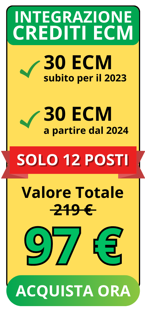 In più ti porti a casa ben 60 crediti ECM compresi nello stesso pacchetto, quindi avrai subito a disposizione 30 crediti ECM per il 2023 e a partire da gennaio 2024, ulteriori 30 crediti ECM.